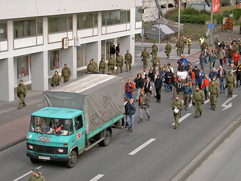 Der Umzug ähnelt zeitweise eher einer Einkesselung...